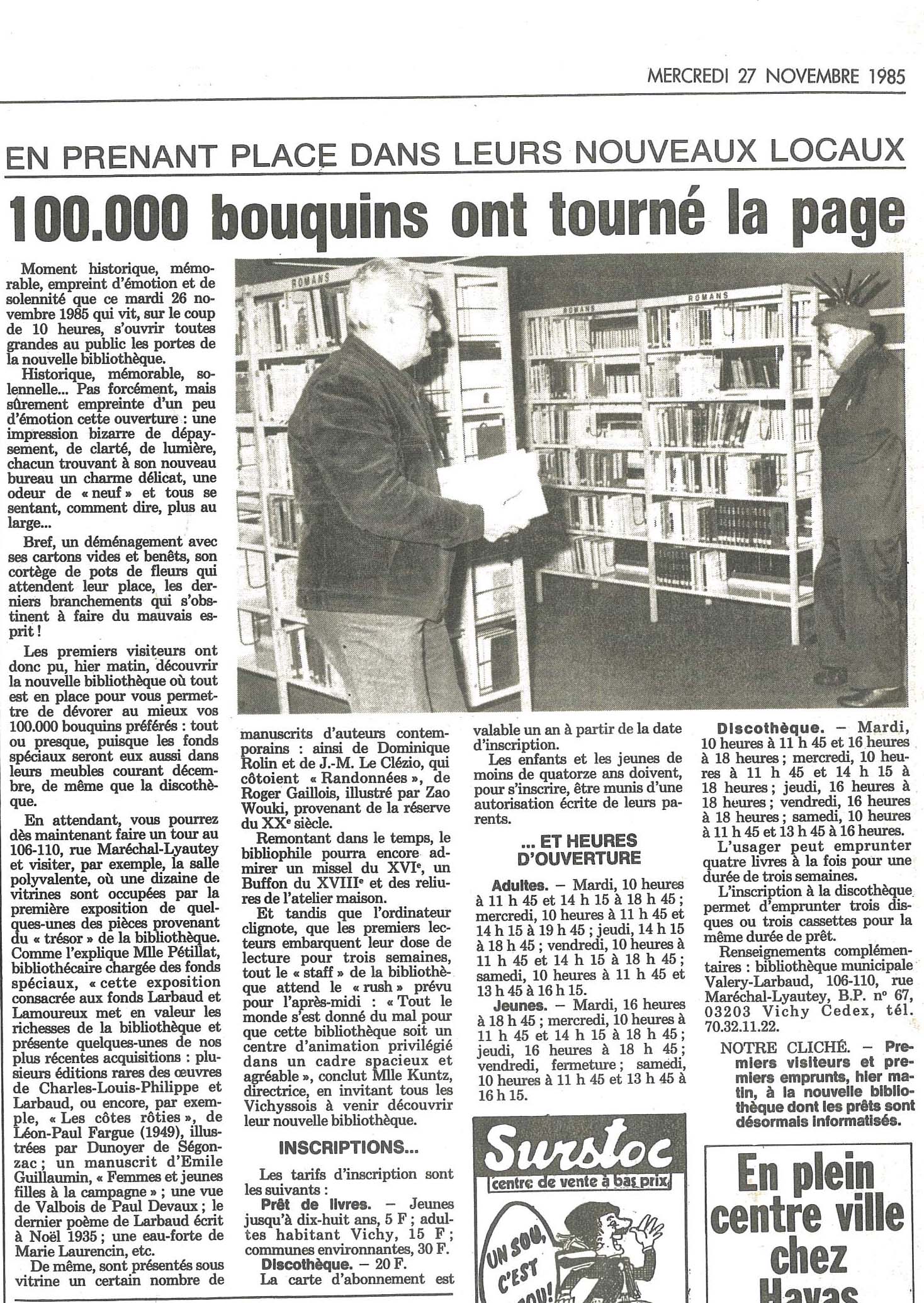 (article du journal La Montagne du mercredi 27 novembre 1985)