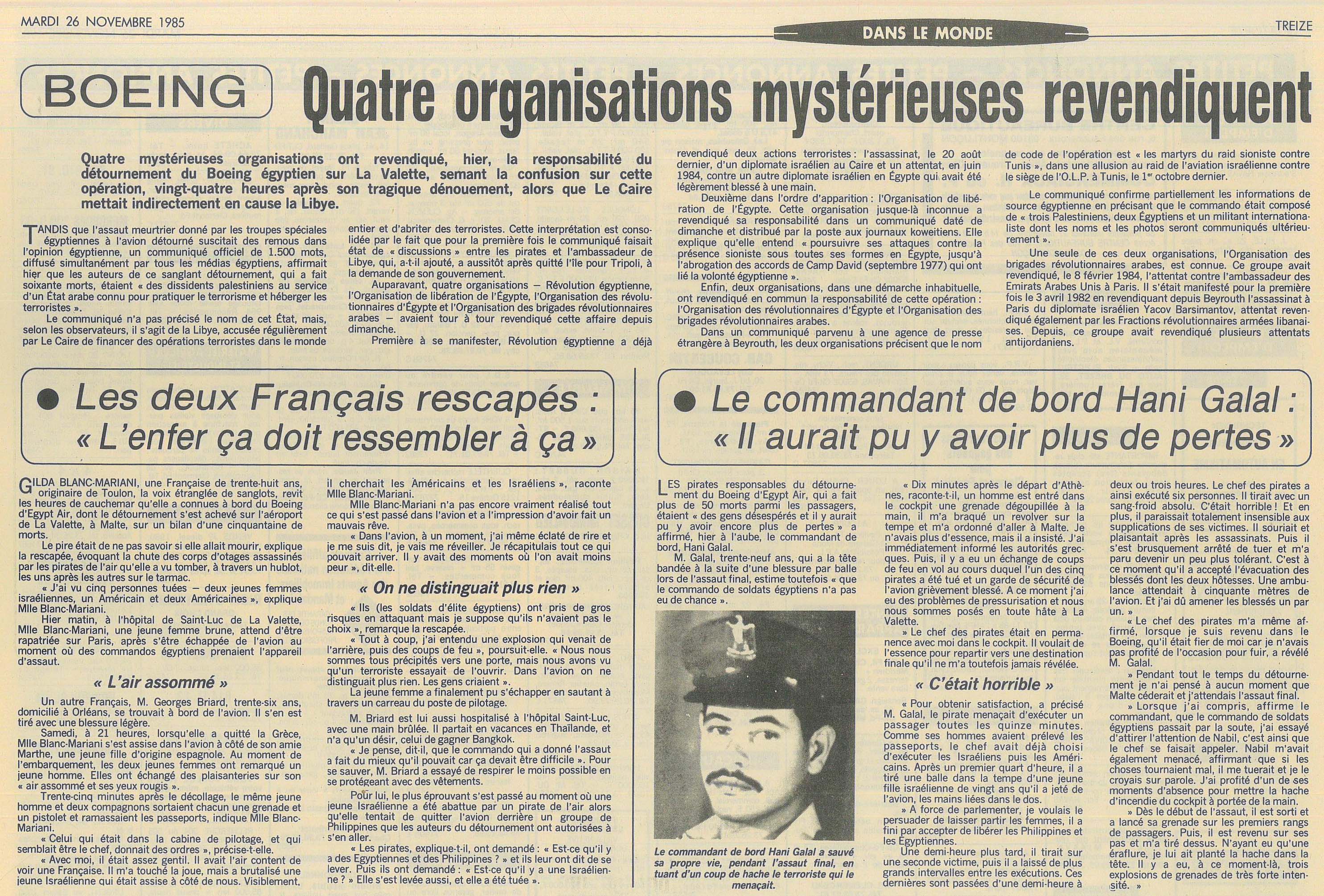 1985accueil40 ans de la médiathèque : le détournement d'un avion de la compagnie Egyptair