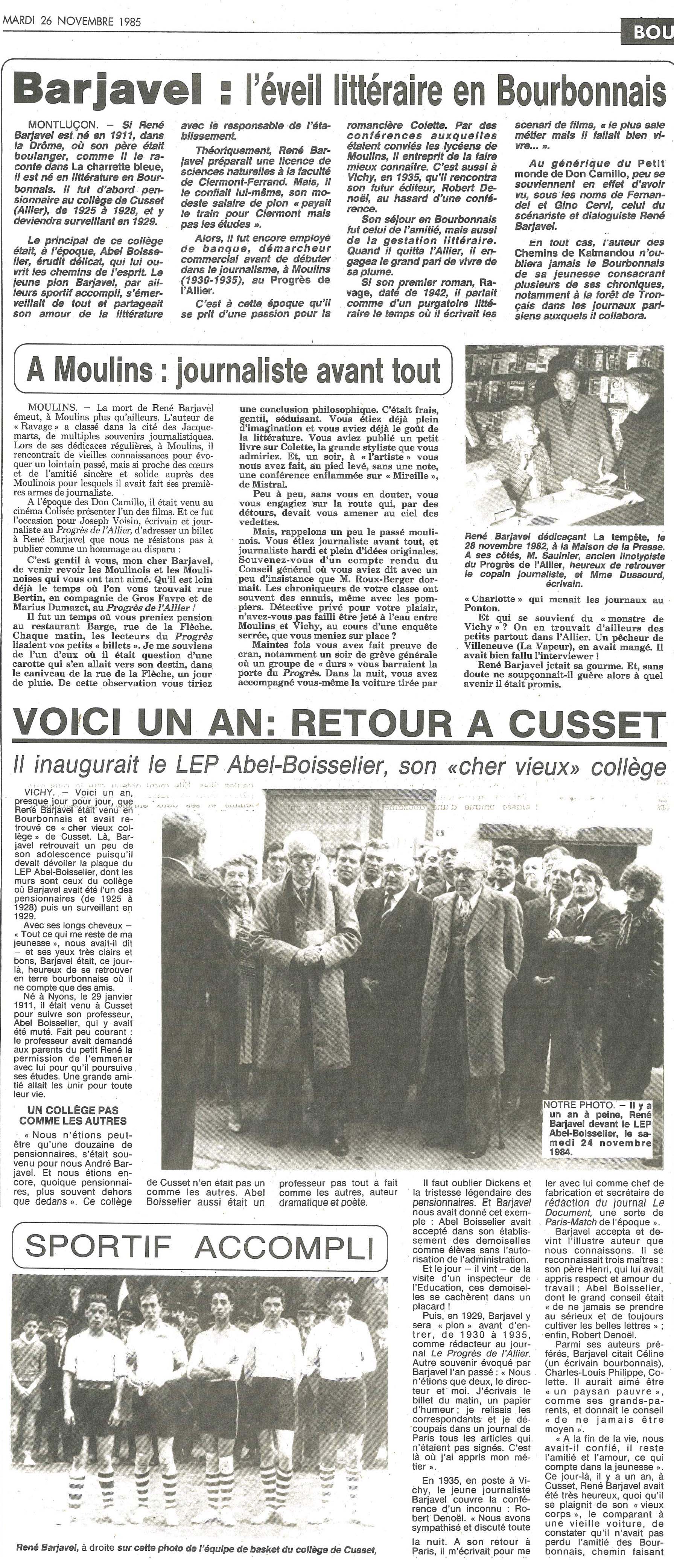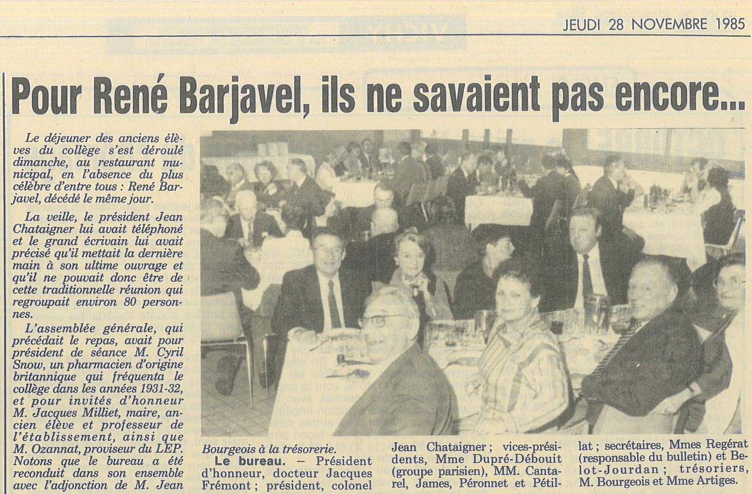 Barjavel 3 red(article du journal La Montagne du mardi 26 novembre 1985)